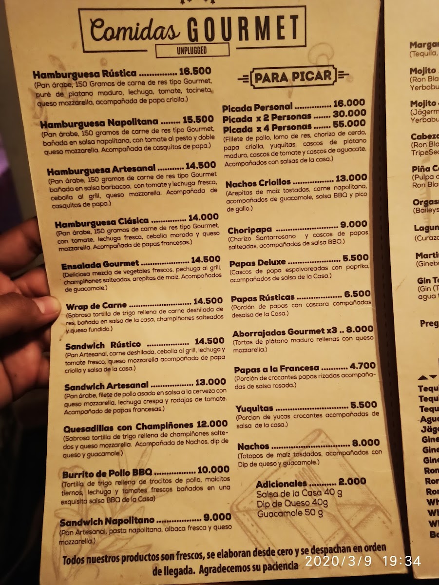Welcome to Unplugged Gastrobar, a vibrant culinary spot nestled in the heart of Dosquebradas, Colombia. This buzzing establishment offers a diverse menu that will please every palate, featuring everything from flavorful Chicken BBQ burritos to crispy chicken sandwiches served with irresistible crinkle-cut fries. Guests have raved about the freshness and quality of ingredients, making each bite a delight.